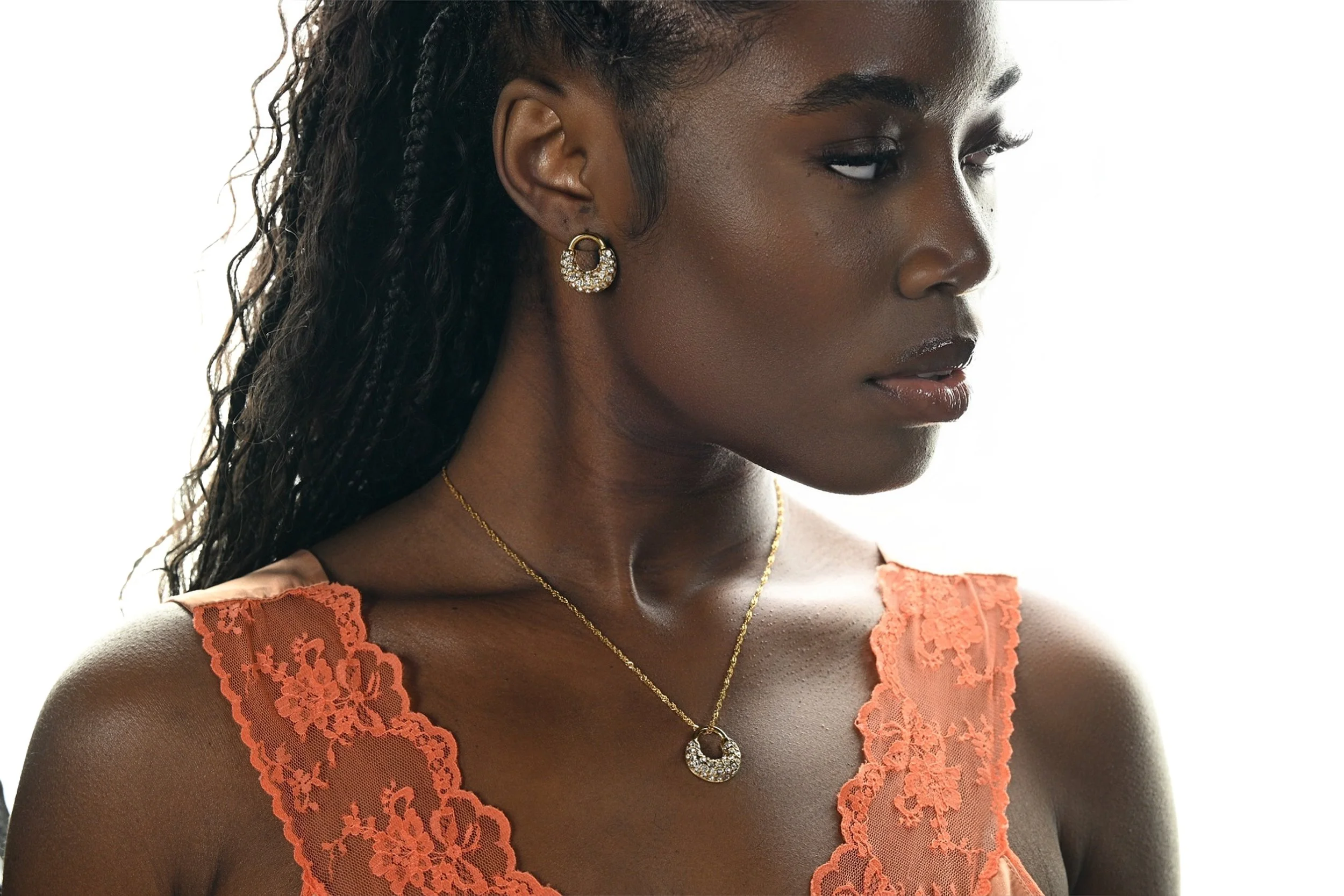 Style with matching Necklace, set sold separately.